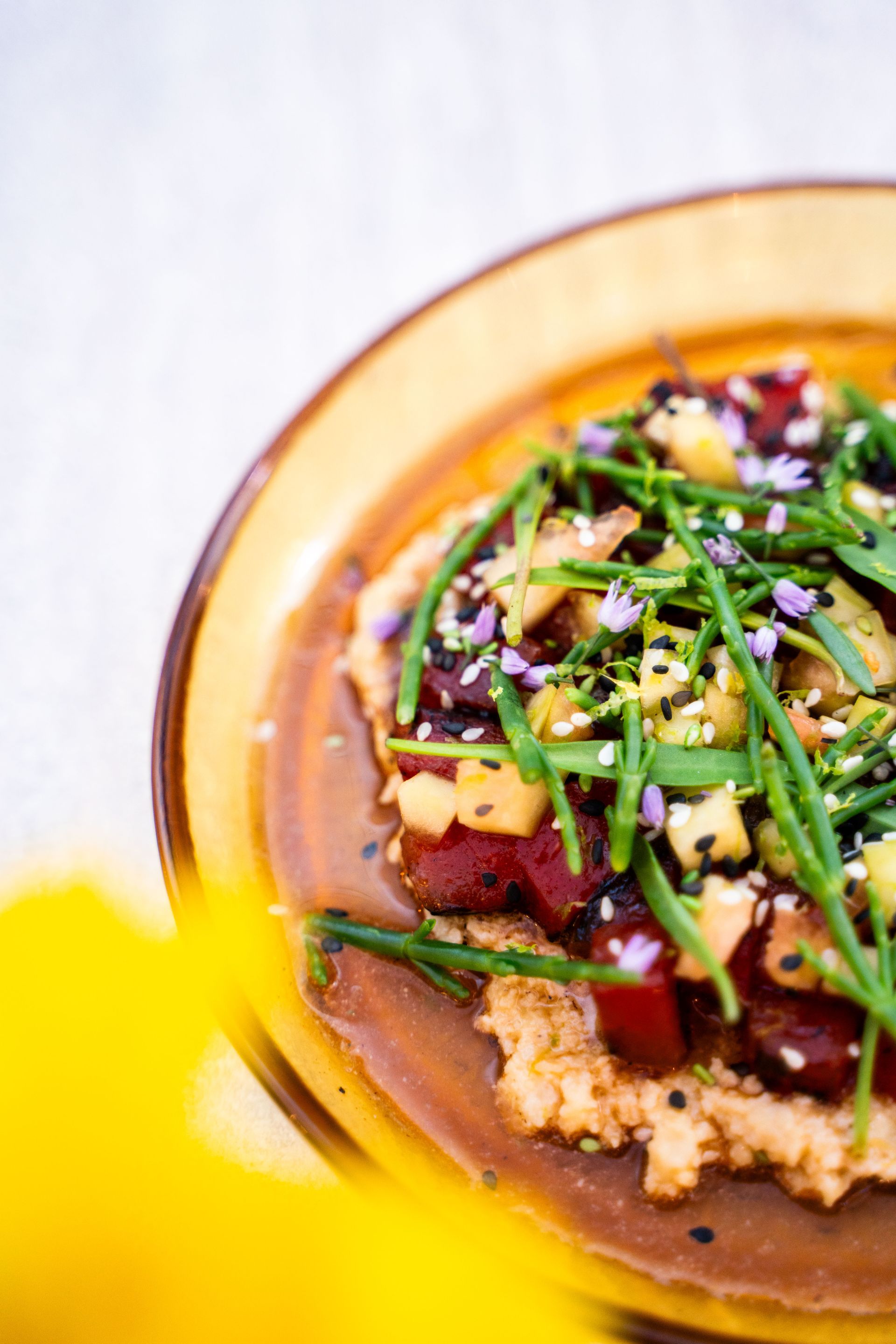 vin jaune | miso | hand-peeled north sea grey shrimps + € 5 pp