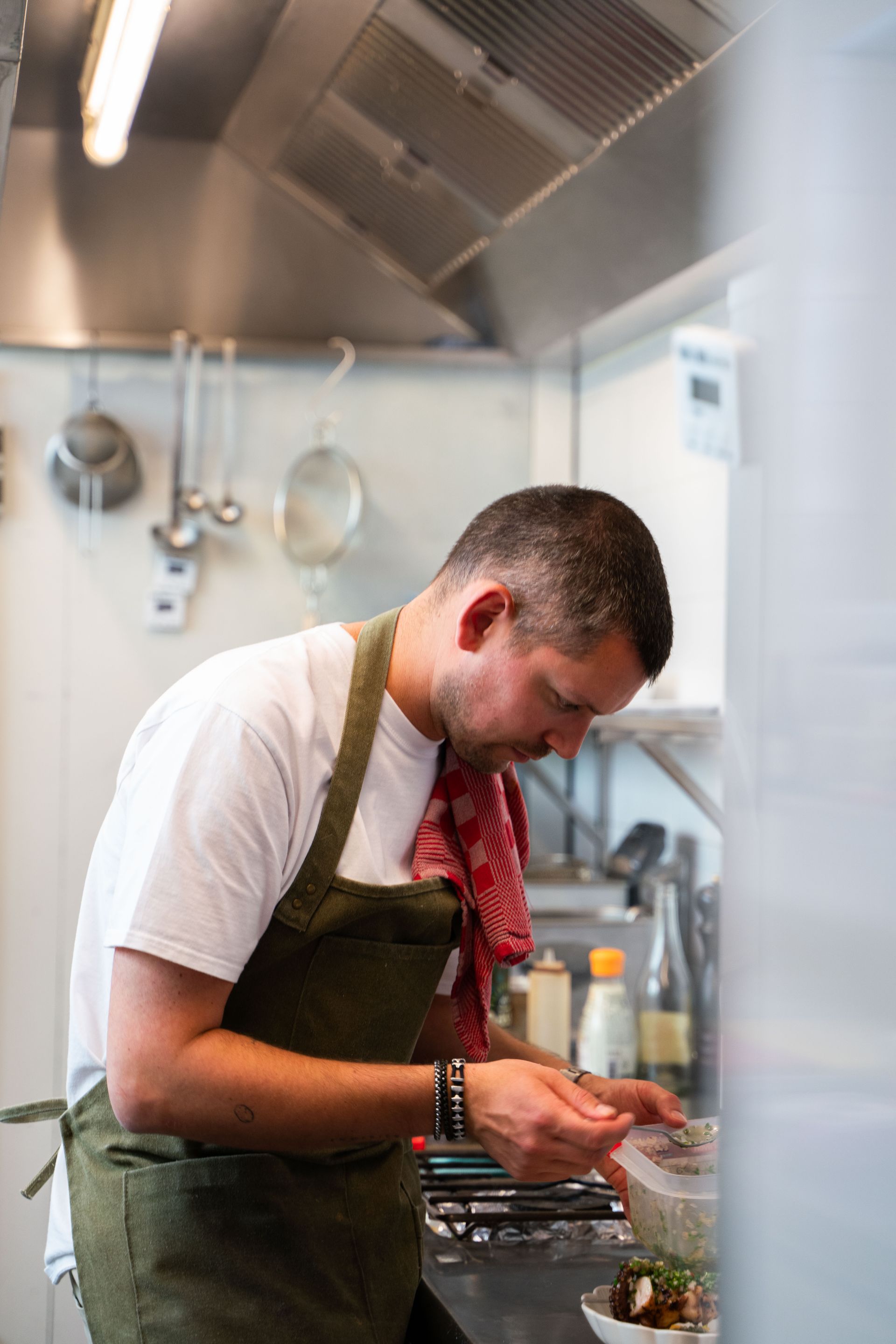 the pleasure of sharing food together. The bites are served at the table at the pace of the kitchen,